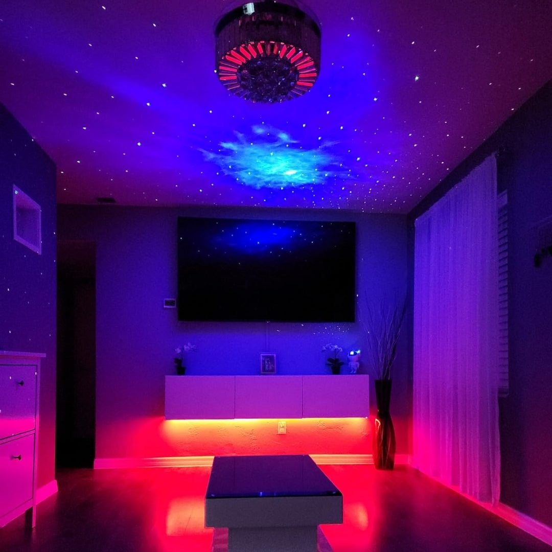 In a standard room, it can easily cover most of the ceiling and upper walls, transforming the entire space into a stunning galaxy.